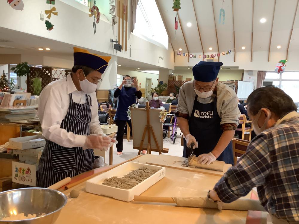 手打ちそばを頂きました 上士幌ライオンズクラブ様2023.12.0712月7日 上士幌ライオンズクラブ様にお蕎麦をうっていただきました。 4年ぶりの開催で職員、利用者さんともに楽しみにしておりました。 温かく濃厚なそば湯と香りのいいお蕎麦が提供されました。 美味しいお蕎麦を頂いてみんな大満足。 ライオンズクラブの皆様、大変ありがとうございました。 前へお知らせ一覧に戻る一覧に戻る次へ